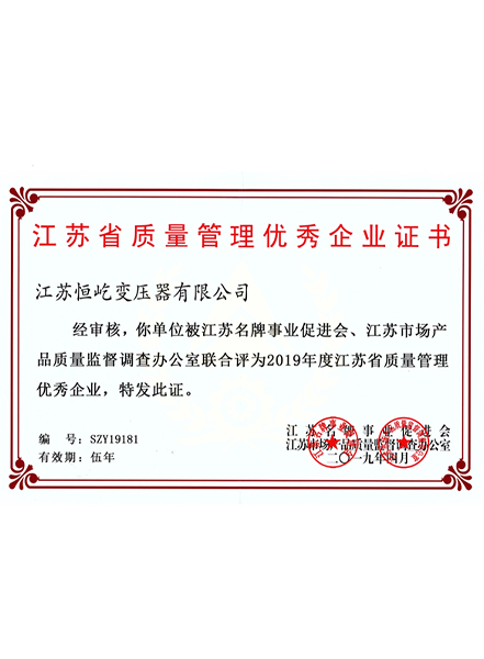江蘇省質(zhì)量管理優(yōu)秀企業(yè)證書
